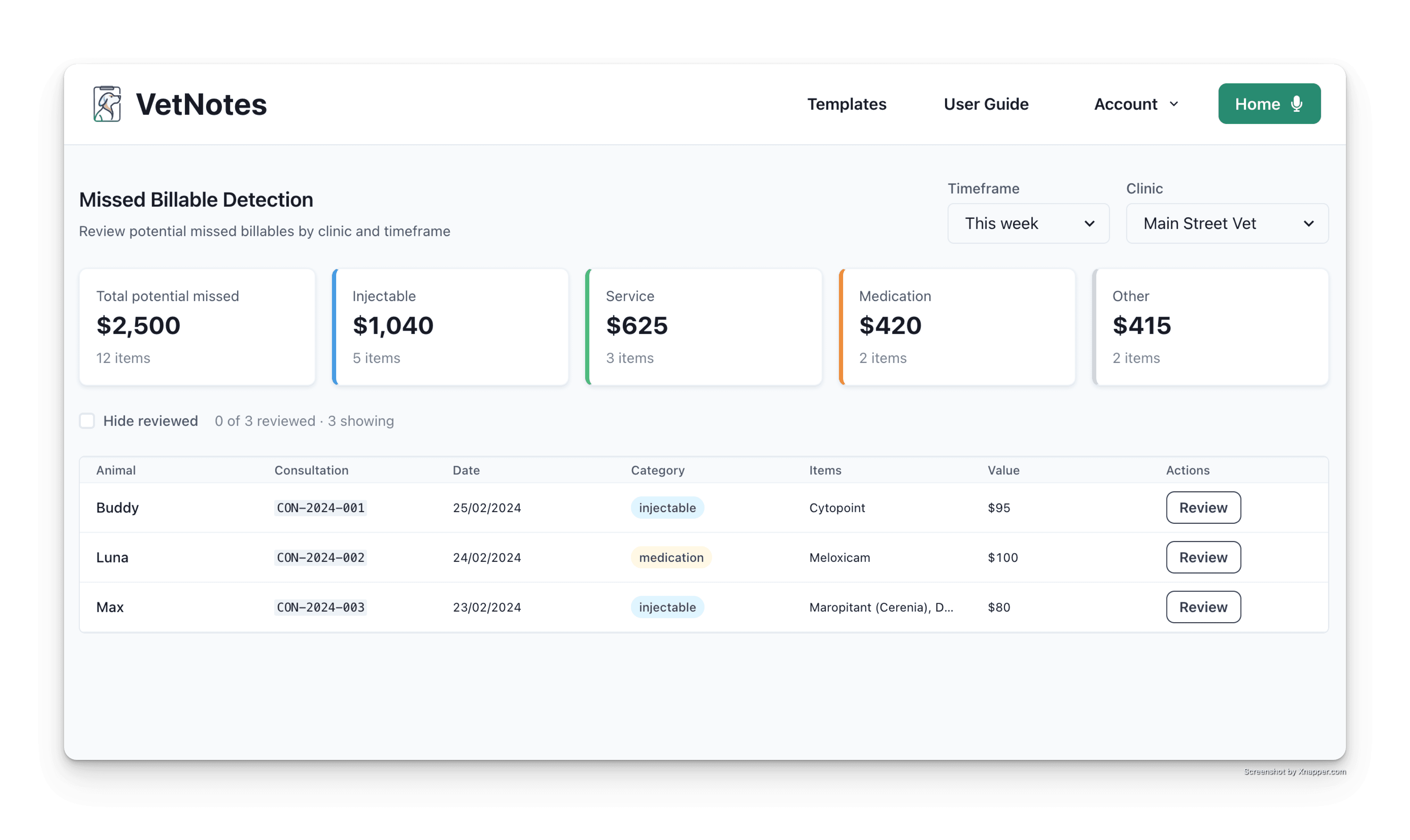 VetNotes automatically detects missed billable items - so your practice can charge accurately.