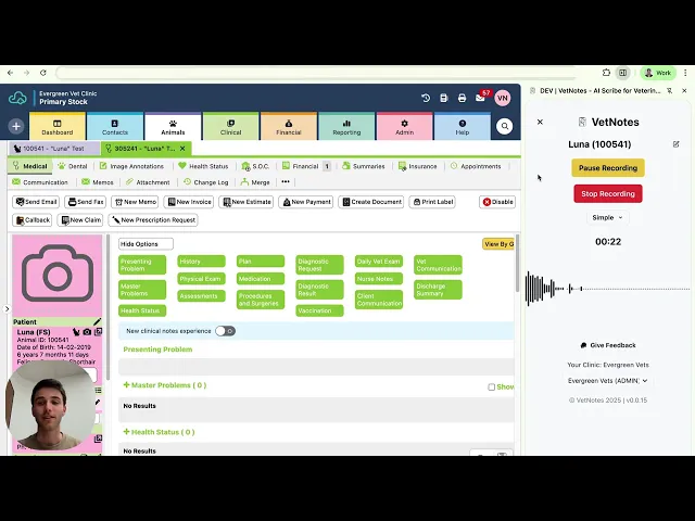 VetNotes Chrome Extension will overlay a button in EzyVet
